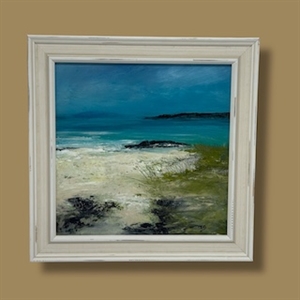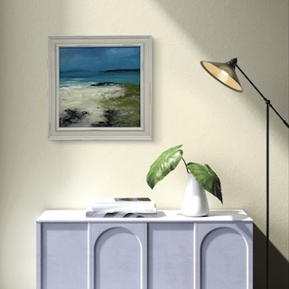 38cm x 38cm Famed in a off-white wood frame Acrylic on board