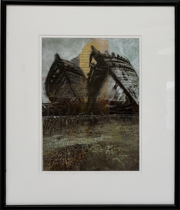 Digital layered photography on Mixed Media and hand painted fabric subtstrate. 41x36cm framed